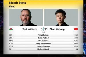 第一阶段,赵心童7-1领先马克-威廉姆斯。