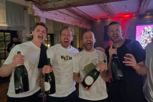 这名拜仁中场社媒晒出了与队友乌尔比希、凯恩、戴尔、格雷茨卡庆祝夺冠的照片。