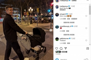 体育资讯5月5日讯 巴萨门将佩尼亚更新社媒动态,晒出带娃的照片。