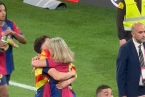 记者Víctor Navarro社媒晒出巴萨赛后庆祝的视频,18岁的库巴西激动地与妈妈拥抱。