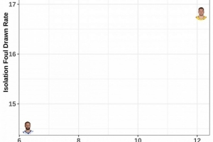 纵坐标:单打造犯规率。库里约14%,亚历山大约18%,东契奇约17%
