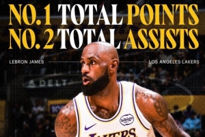 今天,湖人官方晒出了专属海报,并写道:“NBA历史得分王现在还位居总助攻榜第二,勒布朗是独一无二的。”
