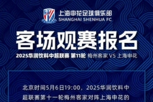 2025华润饮料中超联赛第11轮 梅州客家VS上海申花 客场观赛报名