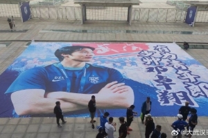 武汉体育中心五号门门口,武汉球迷已经展示致敬邓卓翔巨型Tifo,现场接受入场球迷在Tifo上签字留念,以示支持。