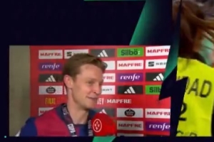赛后德容接受采访时被问怎么不戴像亚马尔、巴尔德那样的墨镜,德容回答:没有太阳