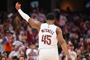 本场比赛,骑士球星米切尔表现还行,但是外线实在太铁,在34分钟的时间里,投篮30中13,三分球11中1,罚球9中6,拿到33分5篮板4助攻1抢断的数据,正负值-19。