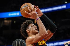 本场比赛,老鹰球员杰伦·约翰逊继续出色发挥,场上依旧全能,在上半场就拿到17分,首发出战33分钟,投篮16中9,三分球4中1,罚球6中4,拿到23分11篮板6助攻1抢断2盖帽的全面数据,正负值+11。