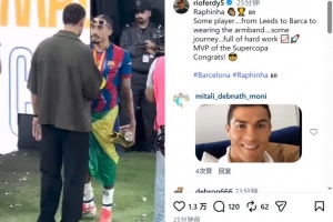 费迪南德参与了这场比赛的解说工作,他在社交媒体上晒出赛后与拉菲尼亚交流的视频,并配文:“拉菲尼亚,真是个了不起的球员,从利兹联到巴萨,再到如今戴上队长袖标,这是一段充满汗水和努力的旅程 📈🚀 西超杯MVP! 恭喜!”