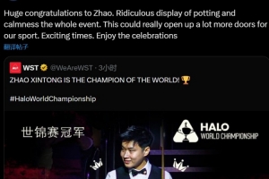 艾伦写道:“热烈祝贺赵心童!他在整届赛事都展现出了令人难以置信的进攻火力和冷静沉着。这次胜利真的有可能为我们的这项运动打开更多大门。令人振奋的时刻,好好享受庆祝吧!”