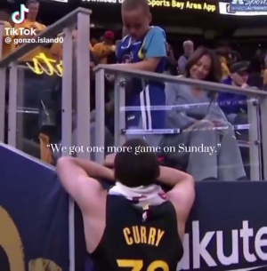 体育资讯05月06日讯 美媒用技术手段放大了库里在G6不敌火箭赛后与儿子卡农的对话。