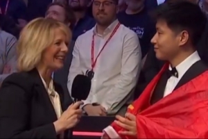 赵心童夺冠后接受官方采访,主持人特意用中文向赵心童打招呼,并祝贺他获得世界冠军。赵心童也用中文回应。