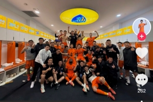 赛后,孙学龙在社媒晒出全队的庆祝合影并配文写道:“永不放弃的精神 团队的力量兄弟们牛逼⚽️💪”