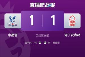 体育资讯05月06日讯 英超第35轮最后的一场比赛,森林1-1战平水晶宫,近5轮比赛1胜1平3负丢了11分,排名从第3掉至第6。