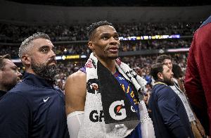 第三节比赛,掘金后卫拉塞尔-威斯布鲁克单节发挥出色!开启个人进攻模式,侵略性拉满,帮助球队紧咬比分!