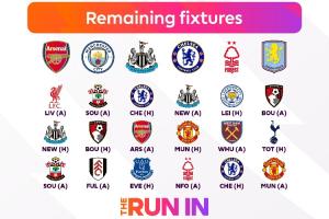 体育资讯05月06日讯 英超官方晒图,展示争5的6支队伍积分和最后3轮的赛程。