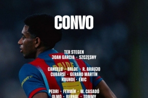 体育资讯1月15日讯 北京时间明天凌晨4点,巴萨将在国王杯16强战中客场对阵桑坦德竞技,巴萨公布了此役的球员名单,冬窗加盟的坎塞洛在列,德容停赛。