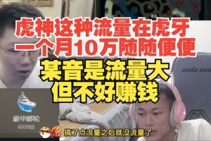 而虎牙平台的小草包听完后,对比同平台虎神的情况说道:虎神这种流量在虎牙一个月10万随随便便!某音是流量大但不好赚钱!