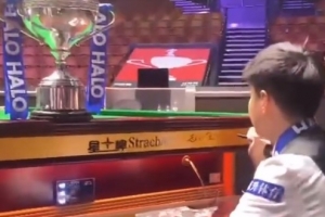 比赛结束后,赵心童在球台上留下了自己的签名。