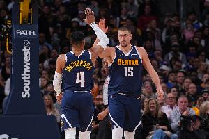 此役,约基奇29投15中,三分6中2、罚球13中10,狂轰42分22篮板6助攻1抢断2盖帽。威少13中7,其中三分5中1,罚球5中3,得到18分2篮板2助攻。