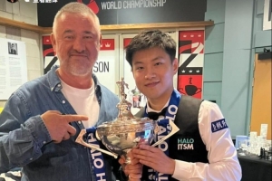 “台球皇帝”亨德利更新了社媒,晒出自己与赵心童的合照,祝贺赵心童夺得斯诺克世锦赛的冠军。