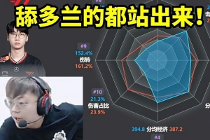 体育资讯5月6日讯 近日Sask直播,观看了LCK第一轮上单选手的数据雷达图,看到Doran排第八直接没当场没绷住:舔Doran的站出来!
