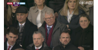 第11分钟,镜头给到看台,曼联传奇主教练弗格森爵士现场观战曼市德比。