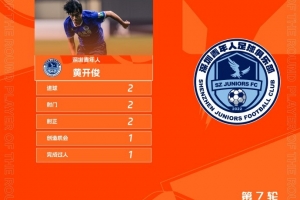 体育资讯5月6日讯 官方消息,深圳青年人球员黄开俊当选中甲第7轮最佳球员,他在本轮比赛中上演梅开二度。