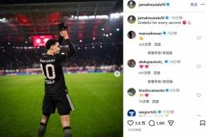 穆西亚拉也在赛后通过社媒晒出自己向球迷鼓掌致意的照片,并配文:“感激每一秒!”