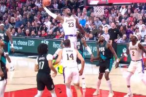 GIF-詹姆斯晃飞防守单臂暴扣