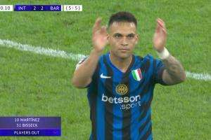 体育资讯05月07日讯 国米vs巴萨第70分钟,国米方面劳塔罗、比塞克下场,塔雷米、达米安登场。本场劳塔罗是火线复出,他在此前比赛中受伤。