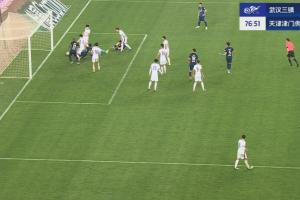 体育资讯04月27日讯 津门虎vs三镇比赛第77分钟,津门虎门前出现混乱,郑浩乾抢先捅射破门,三镇2-1反超津门虎。