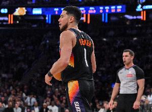 太阳主将布克上半场打得很主动,更多地选择冲击内线或者中距离出手,多次制造犯规获得罚球。