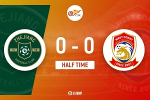 伤停补时1分钟。上半场比赛结束,浙江0-0青岛西海岸。