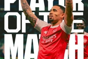 体育资讯1月21日讯 阿森纳官方消息,热苏斯被评为阿森纳3-1国际米兰的队内全场最佳。
