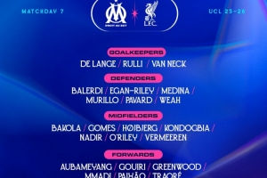 体育资讯1月21日讯 北京时间明天凌晨,马赛将在欧冠联赛阶段第7轮比赛中主场对阵利物浦,马赛公布了此役的球员名单。