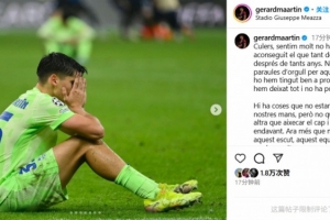 体育资讯5月7日讯 今天凌晨,巴萨在欧冠半决赛被国米淘汰,杰拉德-马丁赛后发文鼓励了球队。
