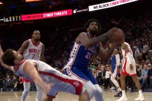 GIF-恩比德进攻拱飞申京 乌度卡抱怨吃T