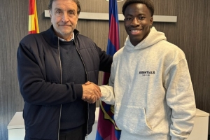 体育资讯1月24日讯 巴萨官方宣布和15岁小将通卡拉(Ebrima Tunkara)就续约达成协议,该协议将于球员年满16岁生效,巴萨青训总监何塞·拉蒙·阿莱克桑科(José Ramon Alexanco)出席了续约仪式。
