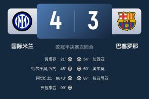 体育资讯05月07日讯 今日凌晨欧冠半决赛次回合,上演史诗级对决,国米4-3加时赛战胜巴萨,晋级决赛,回顾此前Deepseek对于本场比赛过程和结果的预测,竟出奇相符。