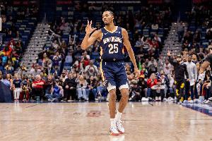 此役鹈鹕前锋墨菲攻防两端表现出色,打了36分钟15投9中,三分7中2、罚球12中12砍下32分3篮板3助攻3抢断,正负值+6。