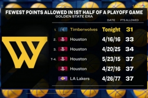 备注:数据统计开始自勇士1962年搬至金州