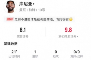 体育资讯1月26日讯 曼联在本轮英超焦点战3-2力克阿森纳,库尼亚本场数据如下: