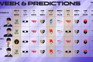 体育资讯5月7日讯 本周韩文流预测:今天和KT的比赛全部看好DK,周六T1 vs DK预测获胜一半一半。