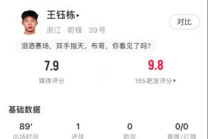 体育资讯04月27日讯 中超第9轮,浙江2-1战胜青岛西海岸。本场比赛,18岁的王钰栋首开记录,用一脚世界波帮助球队打入第一粒进球。进球后,王钰栋泪洒赛场。