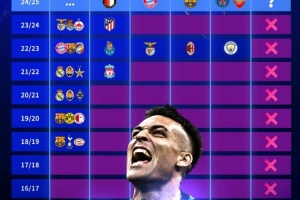 这是国米近3个赛季第2次打进决赛,球队近10年欧冠战绩具体如下: