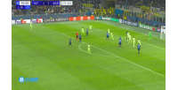 比赛第92分钟,巴萨反击机会,亚马尔右路带球内切后打门击中立柱,差一点就能将比分改写为4-2。巴萨继续控制球权,达米安将反弹球解围,并掷界外球。然而,巴萨未能利用这一优势,并在几秒钟内丢掉了球,索默长传找到图拉姆,邓弗里斯助攻阿切尔比绝平。