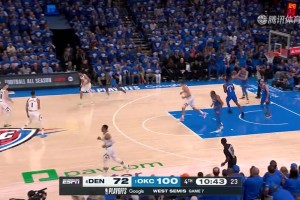 下一篇: 约基奇想骗犯规结果被卡鲁索一把抢断,SGA反击得手,随后掘金暂停换人投降